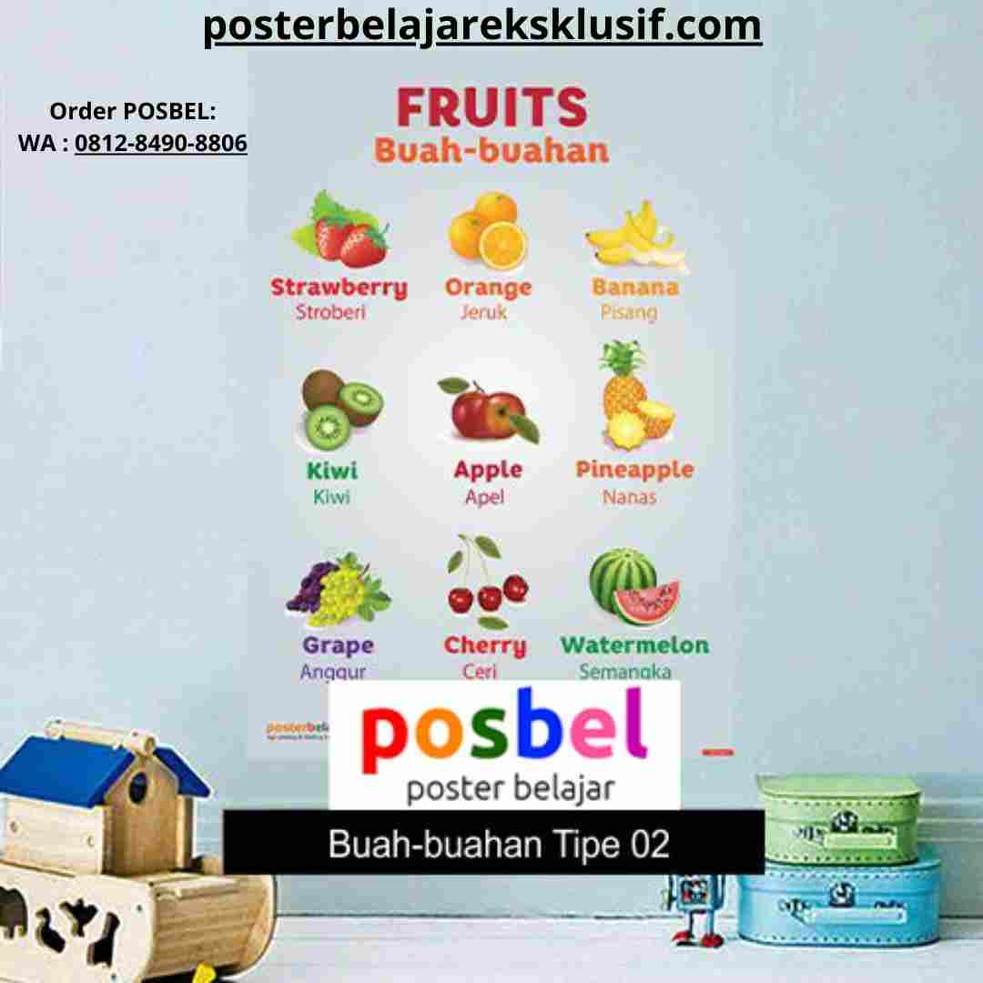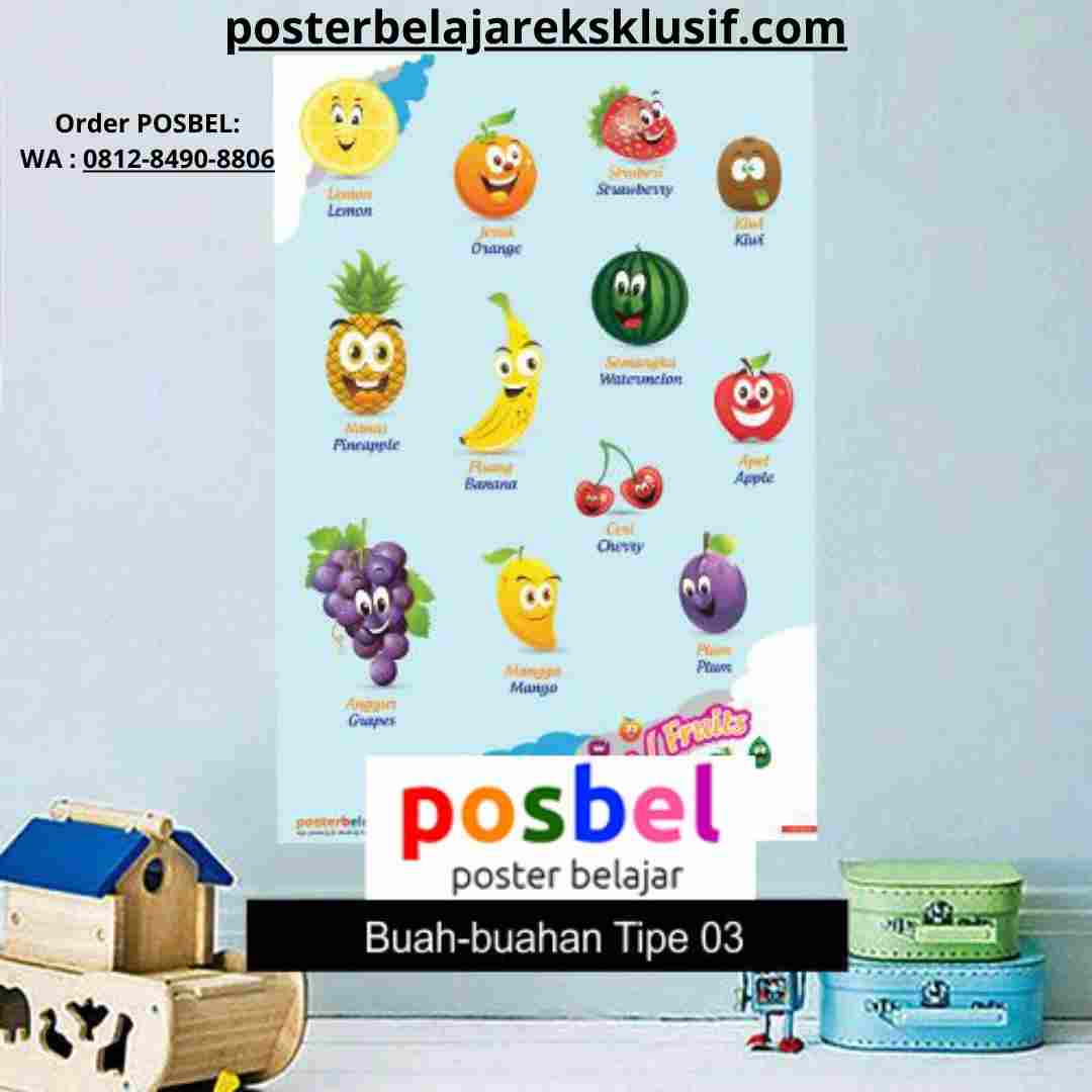Jual Poster Buah Buahan, HP/WA : 0812-8490-8806. Membantu anak-anak  Paud,TK/SD dalam belajar. Desain keren, nggak ada di pasaran, anak-anak pasti suka