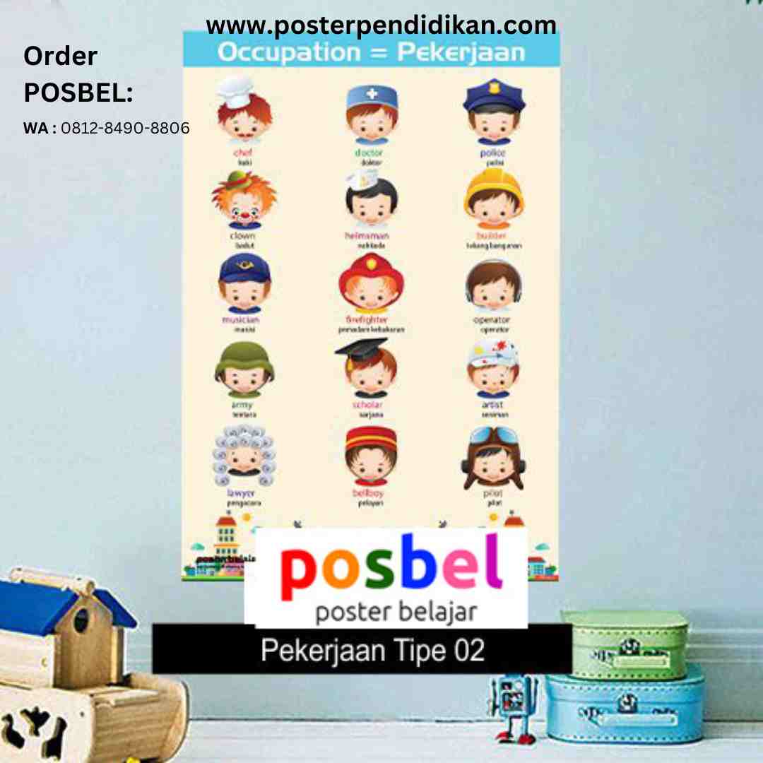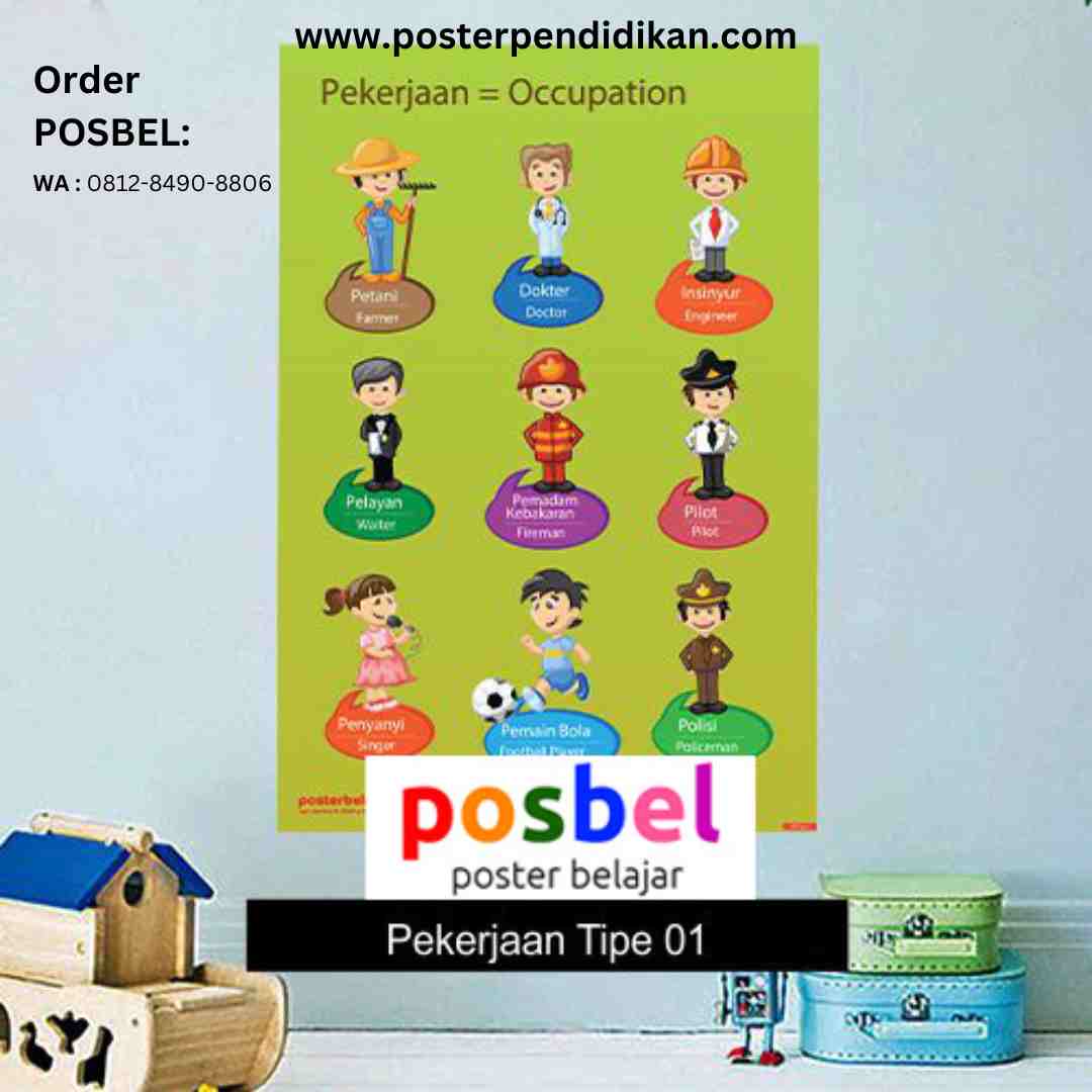 Kami sedia dan jual poster pekerjaan merk POSBEL untuk edukasi anak di sekolah dan di rumah. Hub HP/WA : 0812-8490-8806. Hanya Rp. 15rb/lembar. Ada lebih dari 100 pilihan tema sesuai kebutuhan anak.