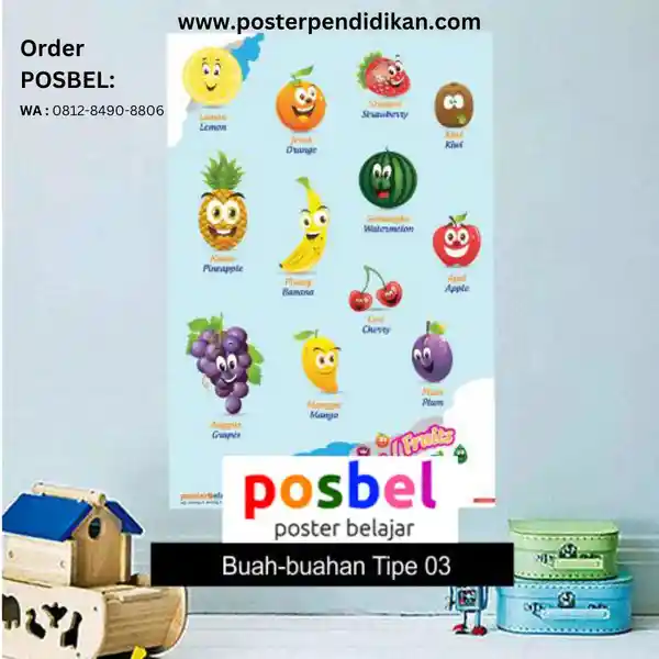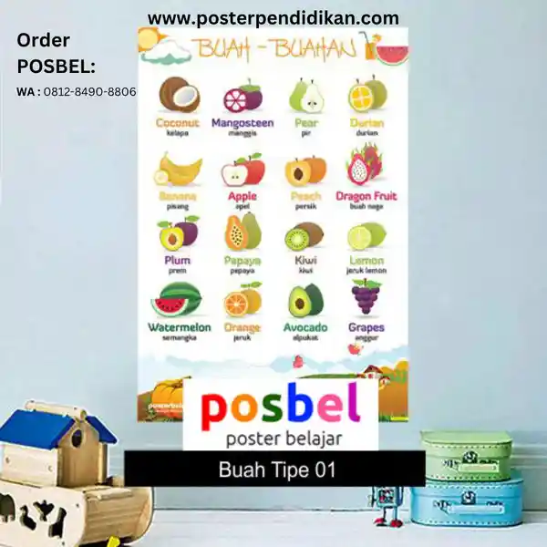 Poster buah-buahan adalah gambar atau ilustrasi yang menampilkan berbagai jenis buah-buahan. Biasanya digunakan untuk tujuan edukasi atau promosi makanan sehat dan dapat digunakan dalam kelas, rumah, atau di tempat-tempat umum. Poster ini dapat memberikan informasi tentang manfaat nutrisi buah-buahan dan mendorong gaya hidup sehat dengan mengonsumsi buah-buahan.