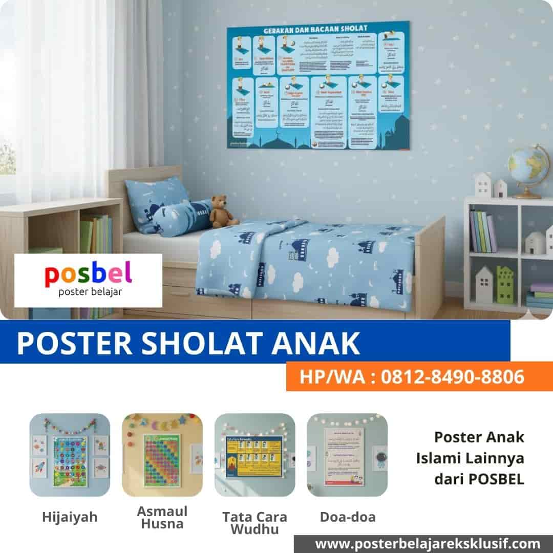 Poster tata cara sholat anak harga murah kini menjadi salah satu media belajar yang semakin diminati oleh orang tua untuk membantu mengenalkan ibadah sejak dini. Mengenalkan sholat kepada anak bukan hanya tugas guru di sekolah atau ustadz di TPQ, tetapi juga tanggung jawab utama orang tua di rumah. Media visual ini terbukti membantu anak memahami urutan gerakan, bacaan, sekaligus membangun kebiasaan ibadah secara bertahap dan menyenangkan.