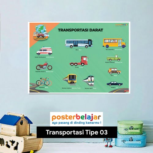 POSBEL yang mengajarkan anak kosa kata / vocabulary alat-alat transportasi darat dalam bahasa Indonesia dan Inggris (bilingual)